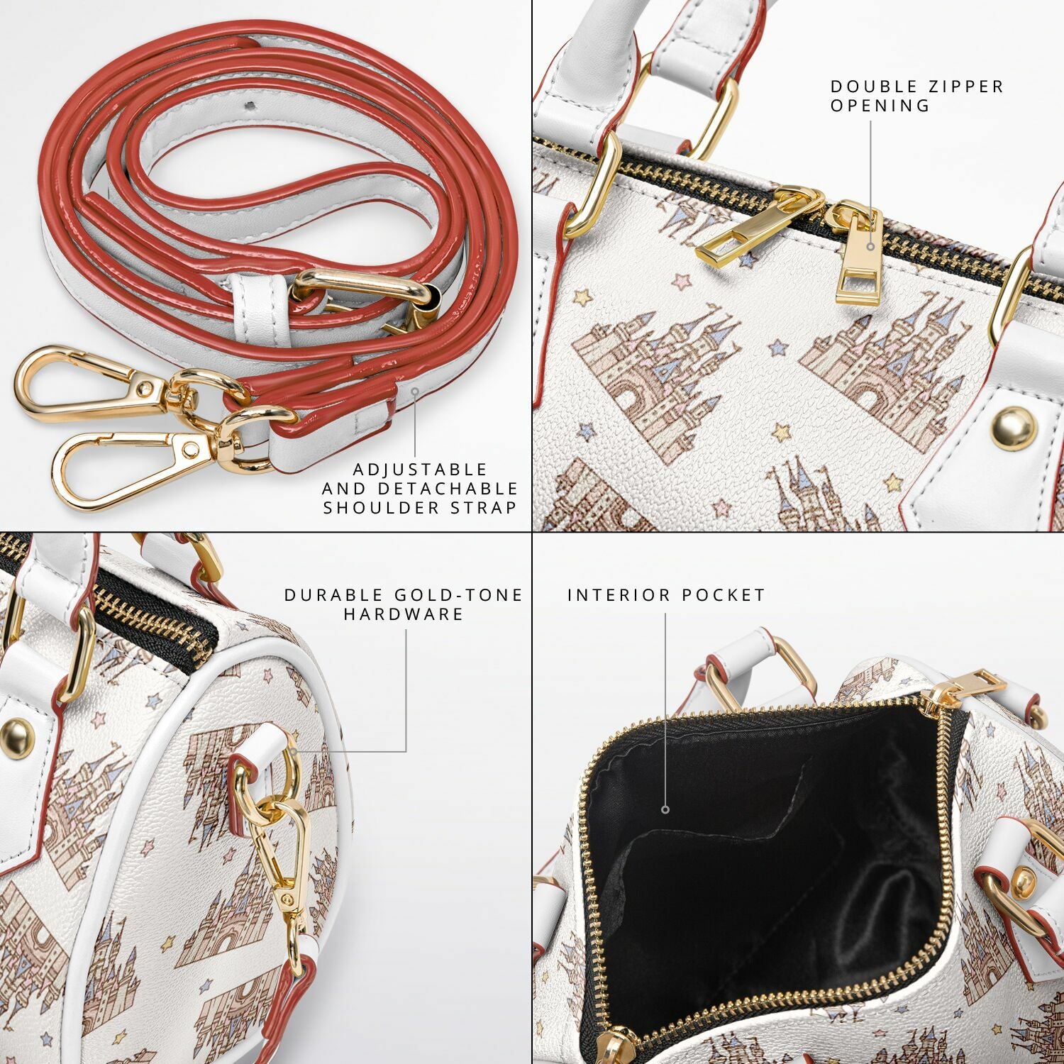 • Golden hardware with gold zipper and black zipper lining